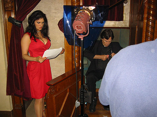 Lisa and Richard run lines while the crew prepares to shoot.